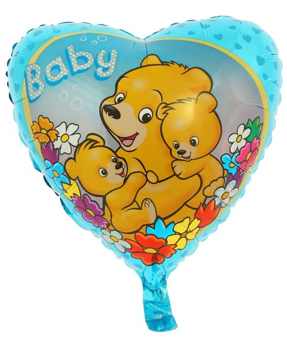 ФМ 1246892 Голубое фольгированное сердце "Baby: Мишки в цветах " D 45 см. (с гелием)