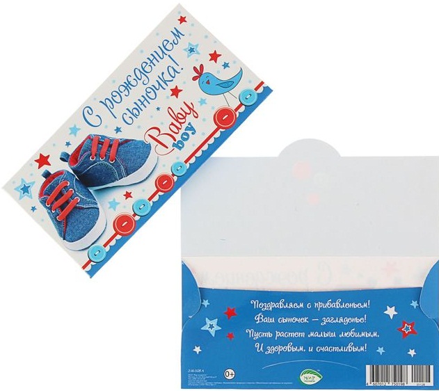 1442227 (2-16-1128 А) Конверт "С рождением сыночка!"