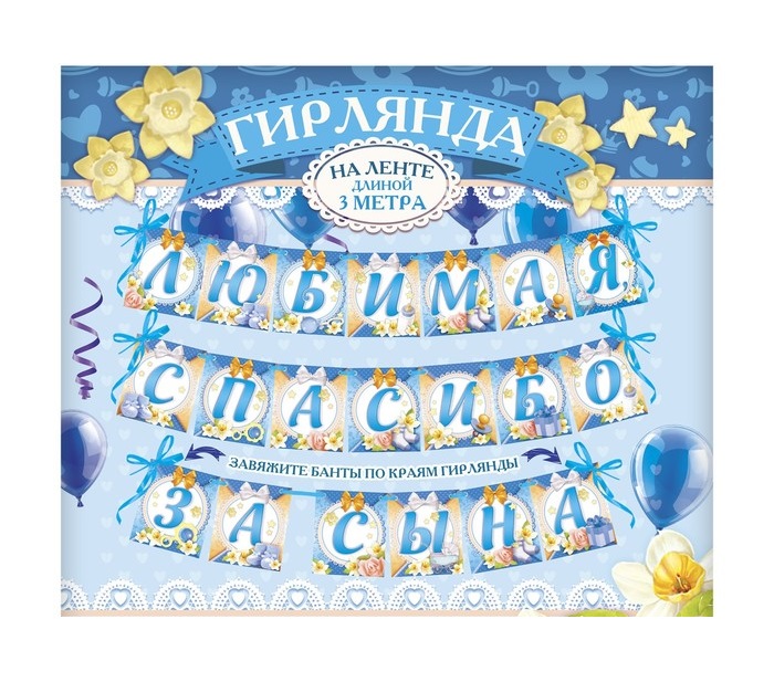2691897 Гирлянда на ленте "Любимая, спасибо за сына!" Длина 300 см.