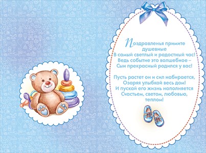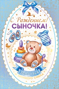 43.130 Открытка " С рождением сыночка!" Тиснение золотом. Формат А5