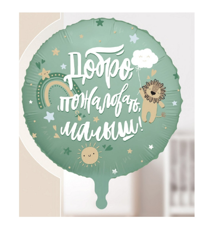 9938168 (АГ 225477) Оливковый фольгированный круг "Добро пожаловать,малыш! Лев" D 45 см.(с гелием)