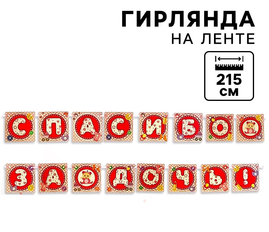 10296959 Гирлянда буквенная на ленте "Спасибо за дочь!" Длина 100 см.