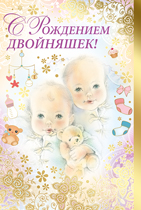 13.326.00 Открытка "С Рождением двойняшек!" Тиснение золотом.Формат А5