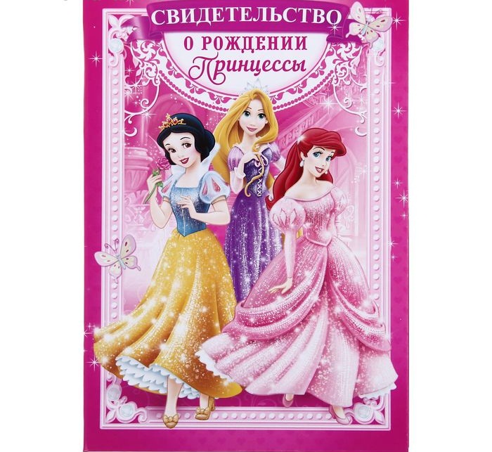 1782238 Свидетельство о рождении "Принцессы" с метрикой. Размер 16,5 * 24 см.