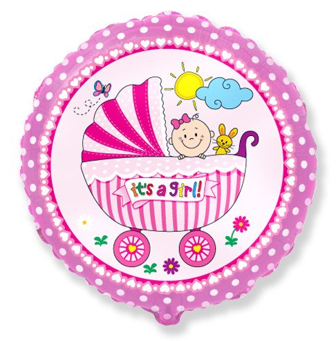 БР 401579 Фольгированный круг "Малышка в коляске" D 48 см. (с гелием)