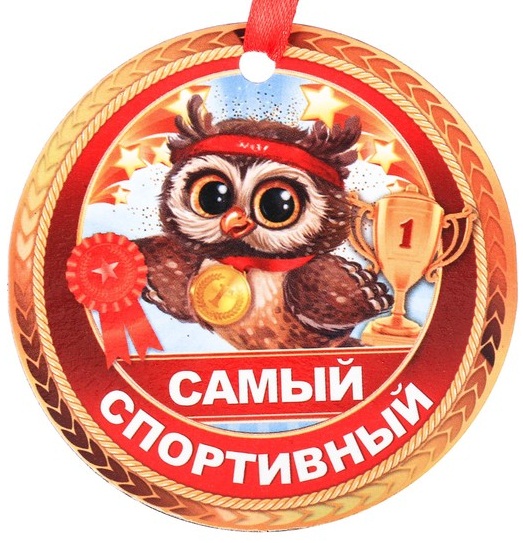 3628977 Медаль магнит "Самый спортивный" на ленте. Диаметр 7 см.