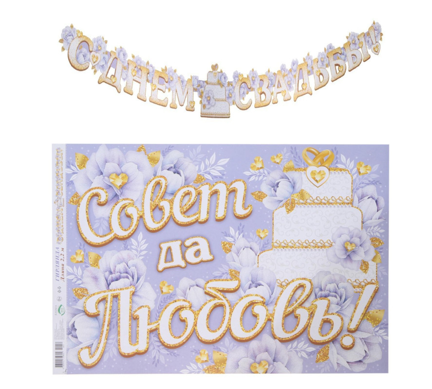 7355404 (8-15-052 А) Гирлянда "С Днем Свадьбы!" Длина 220 см. + плакат "Совет да любовь"