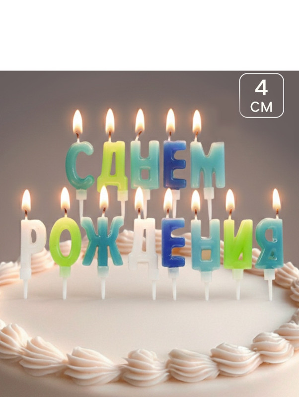 10982688 (803091) Набор буквенных свечей "С Днем рождения!" (13 шт.) Цвет сине- зеленые