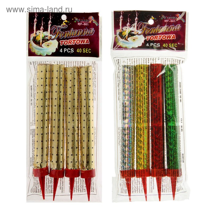 1553639/Н Набор свечей фейверков "Фонтан" (4 шт.) Высота 12,5 см.