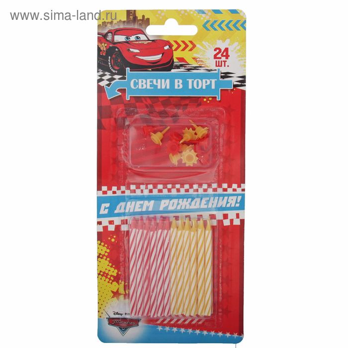 2323269 Набор свечей в торт "Тачки" ( 24 свечей, 12 подставок)