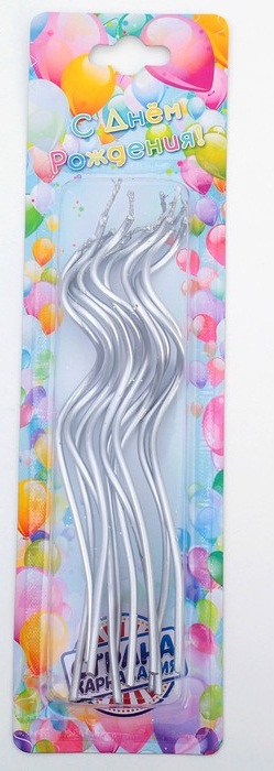 2919646 Набор свечей в торт "Серебро витое" (10 шт.) без держателей.