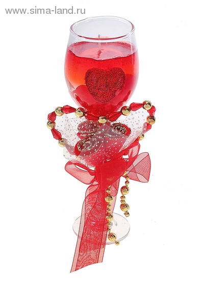 638593 Свеча в фужере "Красное сердце с бусинами" гелевая