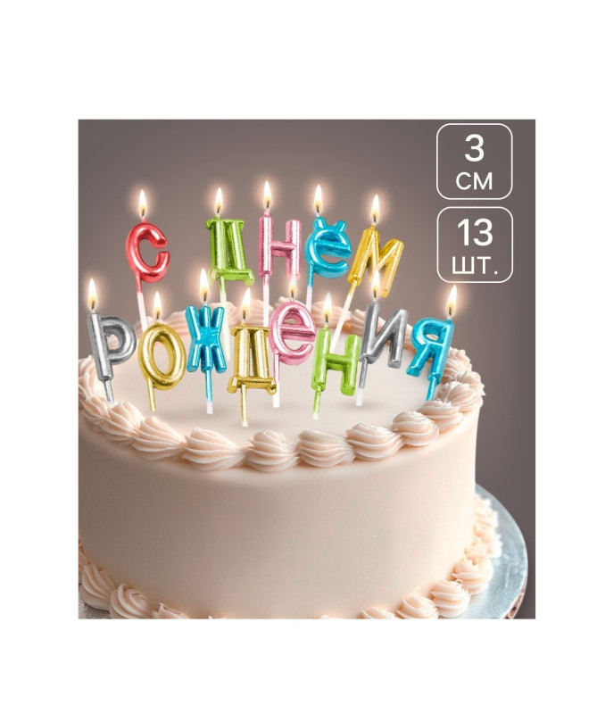 7597547 Набор разноцветных буквенных свечей "С Днем рождения" (13 шт.)