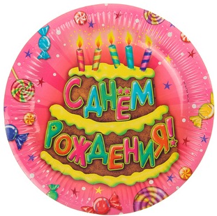 1030691 Набор тарелок "С Днем рождения! Свечи,конфеты" (6 шт.) Диаметр 23 см.