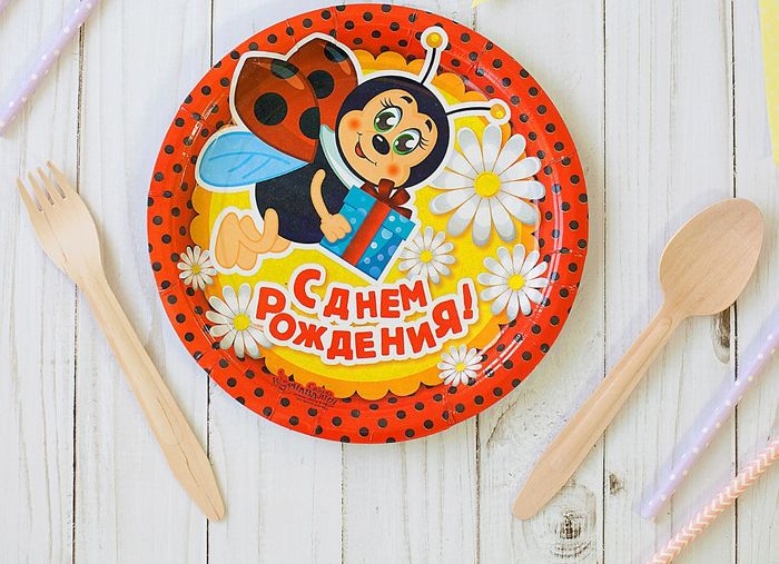 2298401 Набор тарелок "С Днем рождения! Божья коровка" (10 шт.) Диаметр 18 см.Картон
