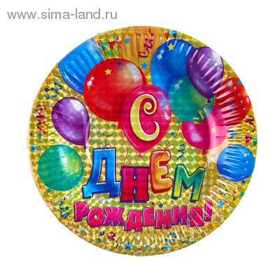 876699 Набор голографических тарелок " С Днем рождения!" . Диаметр 18 см. (6 шт.)