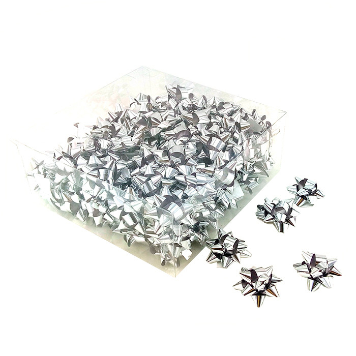 БР 1705019 Бант "Серебряная глянцевая звезда малая" Диаметр 4 см.