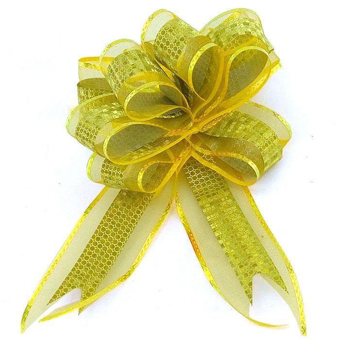 БР 1705050 Желтый с перламутром бант- шар с серебряной полосой.Ширина 4,5 см. Диаметр 16 см.
