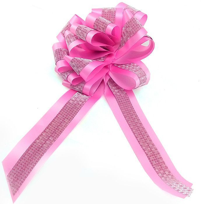 БР 1705059 Розовый бант- шар с серебряной полосой для упаковки. Ширина 4,5 см. Диаметр 16 см.