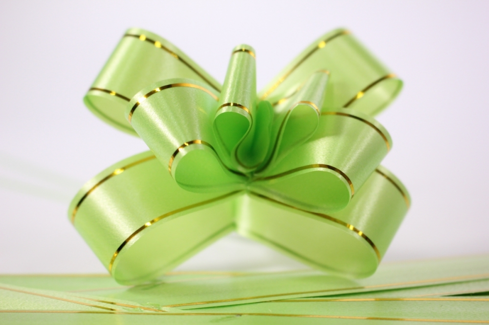 КП 1124 Салатовый бант с золотой полосой. Ширина 2,2 см.