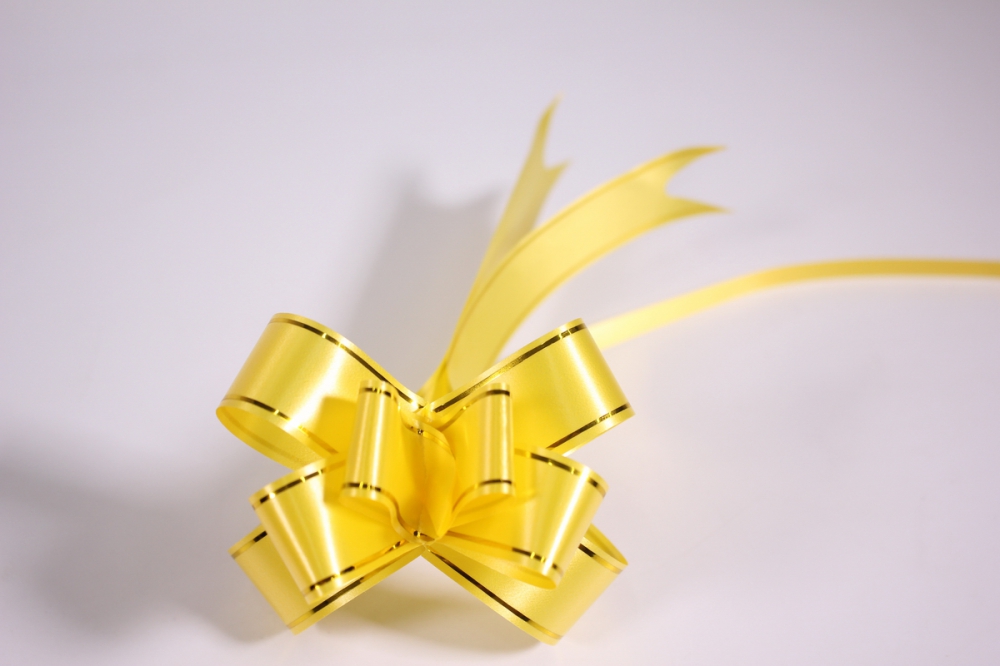 КП 326 Желтый бант с золотой полосой для упаковки. Ширина 2,2 см.