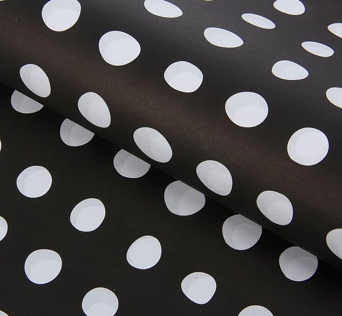 1558535 Бумага упаковочная "Черная в белый горох" Размер 60 * 60 см.Матовая