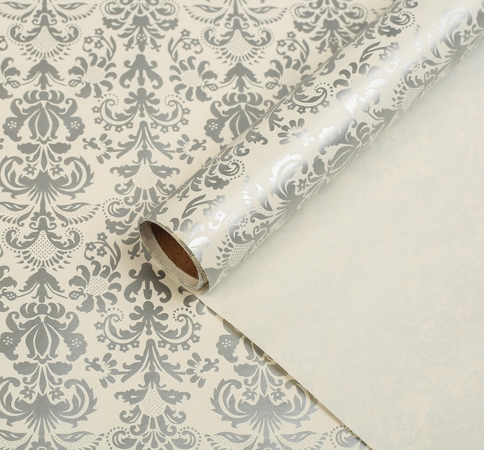2948019/1 Бумага упаковочная "Серебряные цветы" Размер 70 * 100 см.Премиум класс