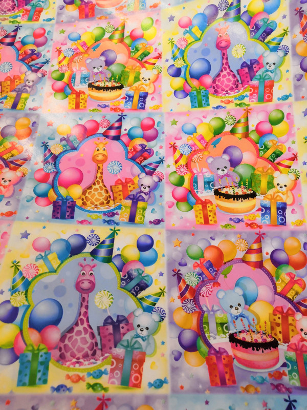 КП 1254 Бумага упаковочная "День рождения у Мишки" Размер 70*100 см.
