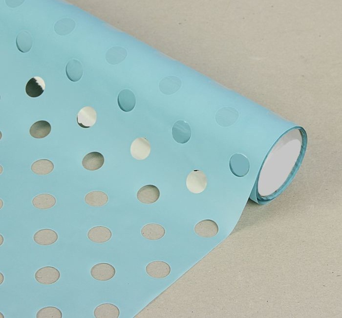 1581360 Упаковочная пленка Премиум "Голубые горошины" Ширина 50 см.