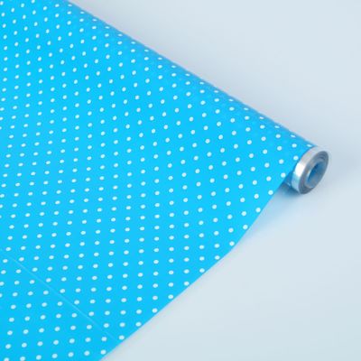 1925132 Голубая пленка в белый горох для упаковки. Ширина 70 см. Плотность 40 мкм