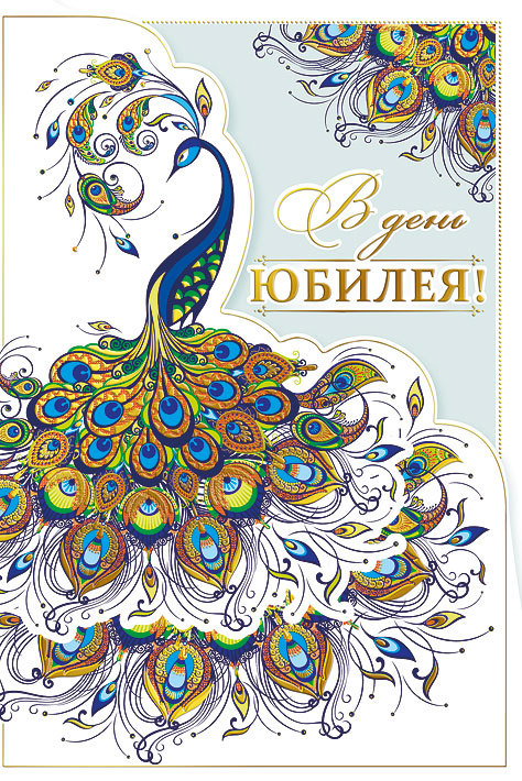 050.530 Открытка "В День Юбилея! Павлин" Формат А5 Тиснение золотом