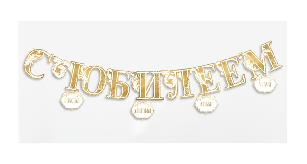 10840608 Гирлянда на кольцах " С Юбилеем!" на стену Длина 100 см. Цвет бело-золотистый