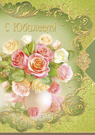 32.084.00 Открытка "С Юбилеем! Розы на зеленом фоне" Тиснение золотом Формат А4