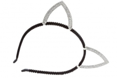 ТЕ 359672 Ободок "Ушки кошки из страз в 2 ряда" на черном бархате
