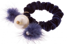 ТЕ 172611 Резинка бархатная Синяя с большой жемчужиной