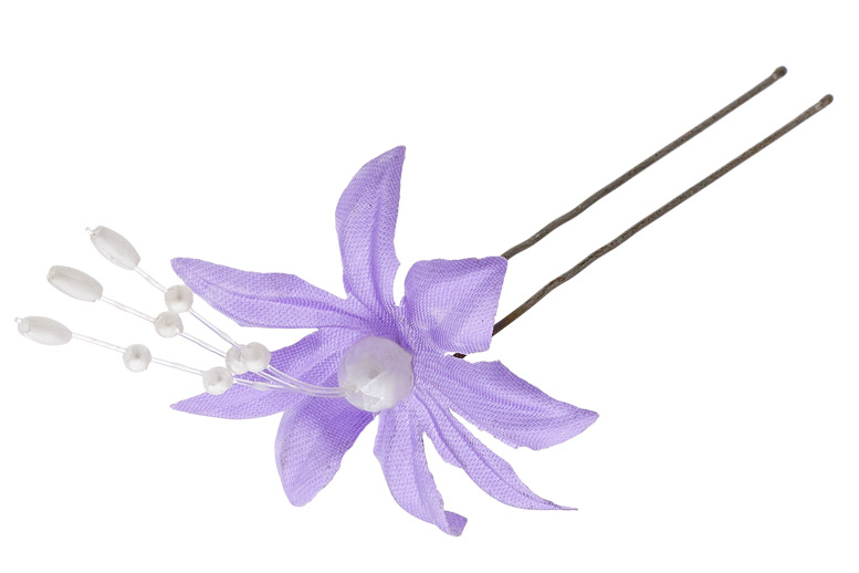 216197934 Шпилька "Сиреневый цветок с бусинами" из ткани.Длина 7 см.