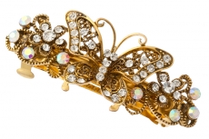 908441438 Заколка автомат Белая бабочка с 2 цветками по бокам