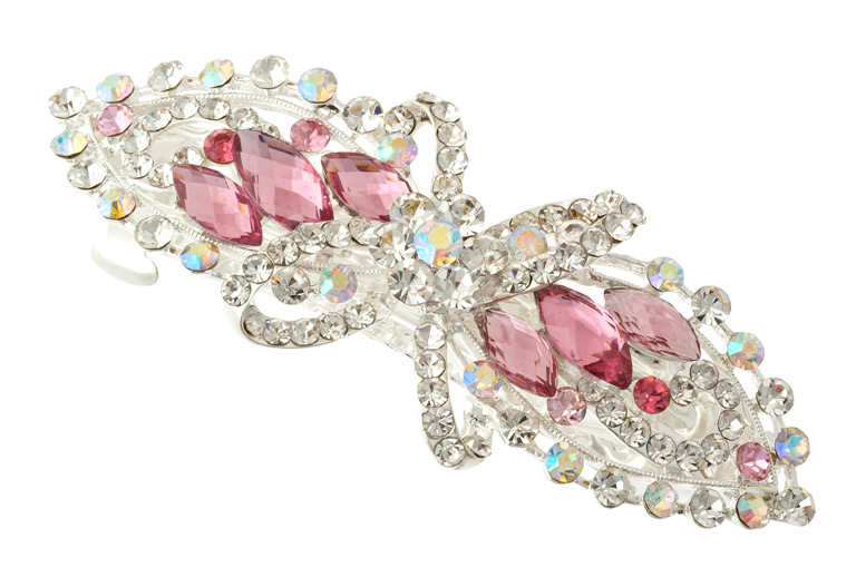 908599639 Заколка автомат Ассорти камни на бантике серебро металл