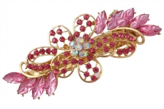 ТЕ 655740 Заколка автомат "Розовый цветок в золоте". Длина 9 см. Металл