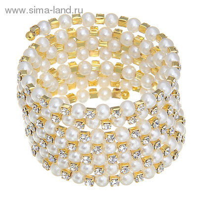 1036325 Браслет- пружинка "Жемчужный в 6 рядов". Цвет белый в золоте