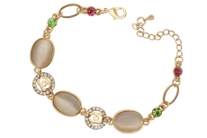 1806187238 Браслет Три овала с зеленым и малиновым камнем золотой узкий металл