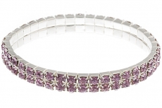 906911311 Браслет "Малиновые стразы в 2 ряда на резинке" Металл. Ширина 0,7 см.