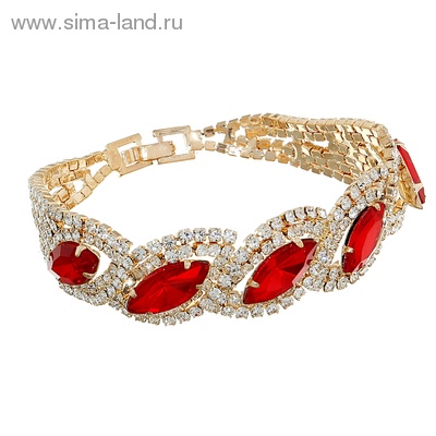 909121 Браслет вечерний "Красные камни в золоте на стразовом ремешке" металл