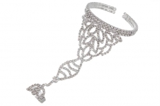 ТЕ 691796 Браслет из страз серебрянный с кольцом