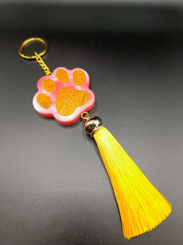 WW 02/Л-ЖР/2024 Брелок с желтой кисточкой "Лапка щенка" Цвет желтый/розовый