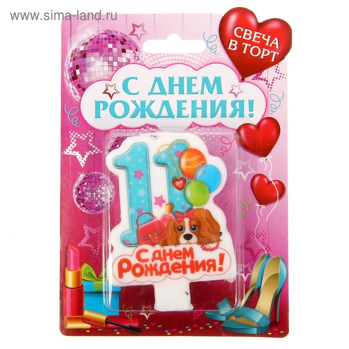 1432827 Свеча для торта "Цифра 11.С Днем рождения" для девочек