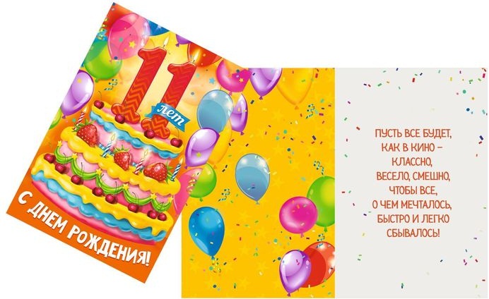1682663 Открытка "11 лет.Торт со свечками" Формат А5