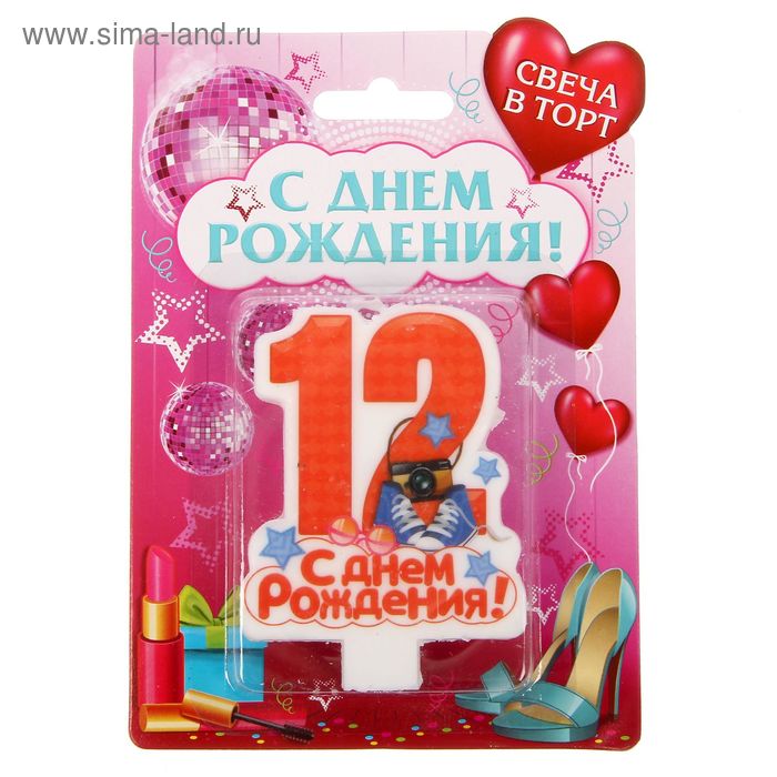 1432828 Свеча для торта "Цифра 12.С Днем рождения" для девочек
