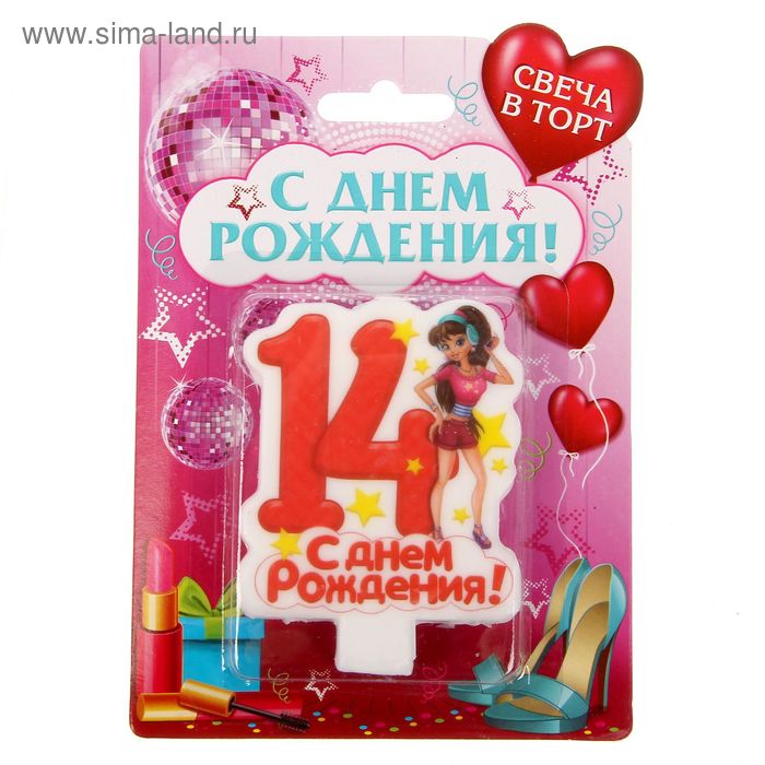 1432830 Свеча для торта "Цифра 14.С Днем рождения" для девочек