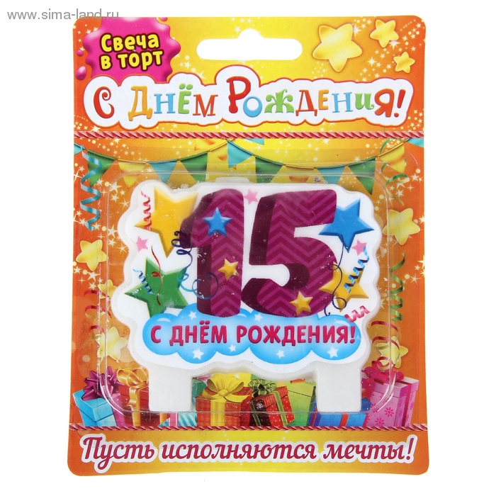 1069431 Свеча для торта "Цифра 15.С Днем рождения.Шарики"